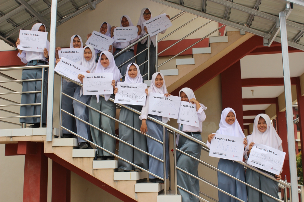 A small leadership group of adolescent girls in West Java, Indonesia share what they dream of becoming.I came to Indonesia to officially launch Right Start – a Nutrition International program supported by Canada in 9 countries in Africa and Asia focused on improving nutrition for millions of adolescent girls, women, newborns and young children. Ahead of the launch we went to a school in Karawang, West Java and met with 900 adolescent girls enthusiastically participating in the ‘Healthy, Beautiful and Smart – Against Anaemia’ campaign.